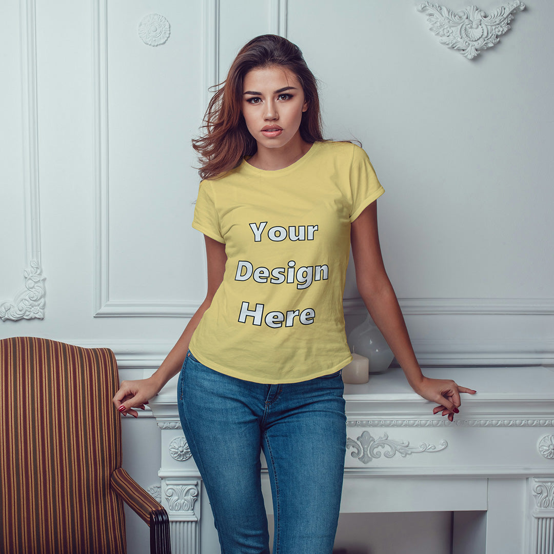 Yellow Round Neck Classic Customized T-Shirt Front Design | Women